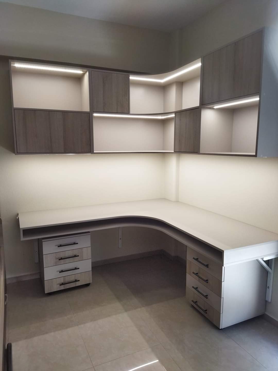 Γραφείο βιβλιοθήκη κρεμαστή γωνιακό με ενσωματωμένο led φωτισμό