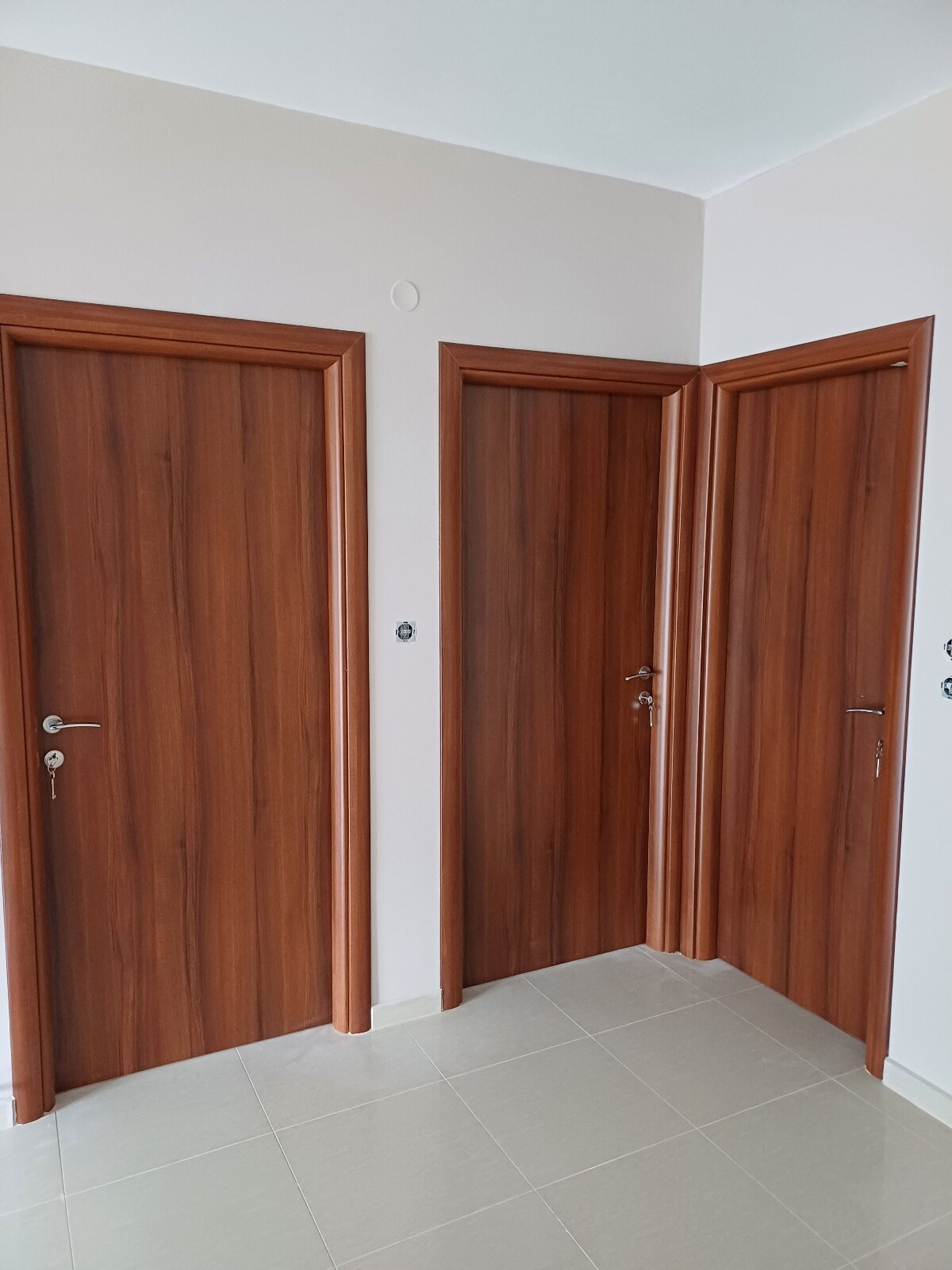 Εσωτερικές πόρτες λαμινέιτ, καρυδιά άψογη εφαρμογή στην ένωση 2 πορτών