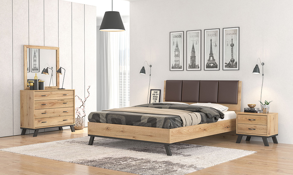 Bed N69 With Brown Technoderma & Honey Furniture
