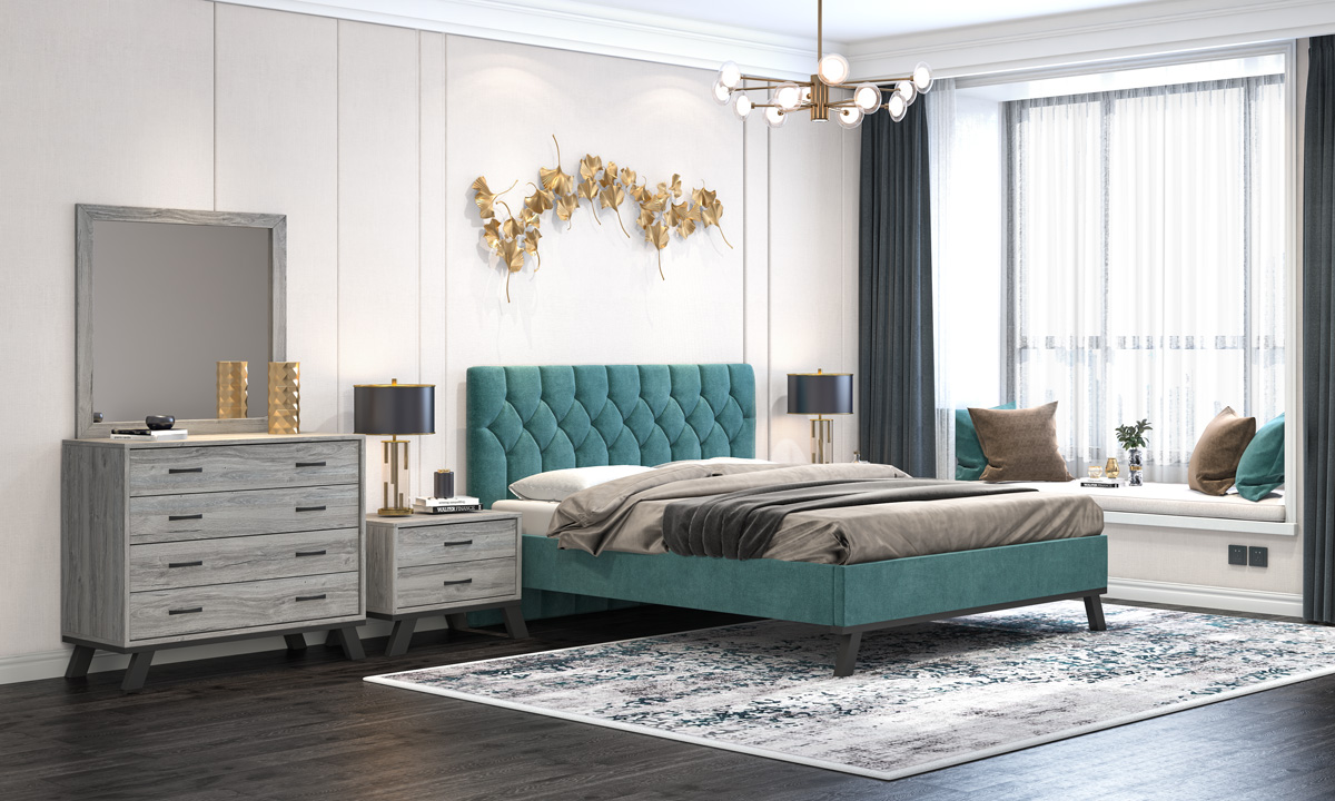 Bed N78 Blue Fabric & Ash Grey Furniture