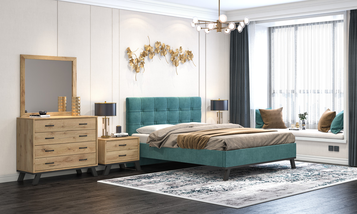 Bed N82 Blue Fabric & Ash Grey Furniture