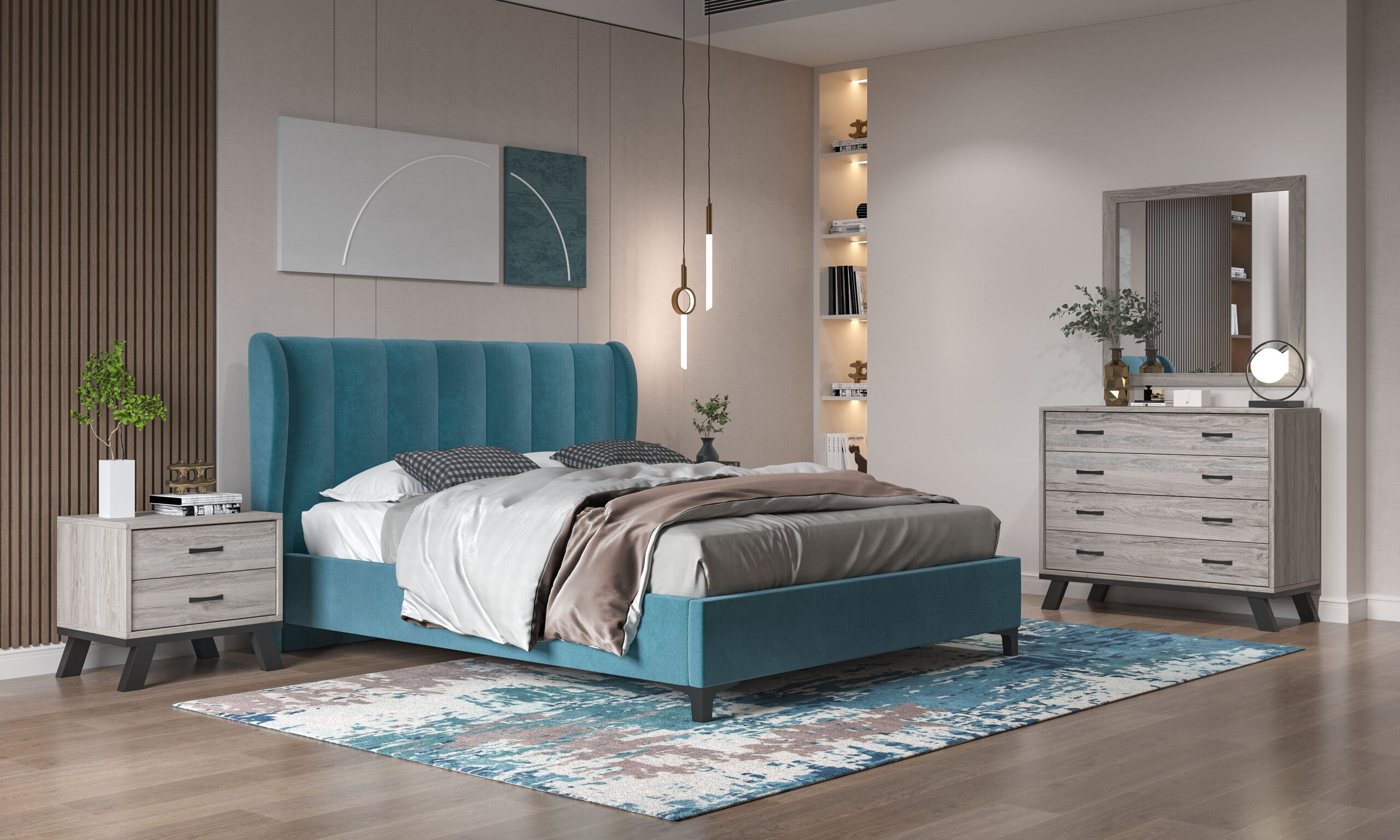 / Bed N82 Blue Fabric & Ash Grey Furniture