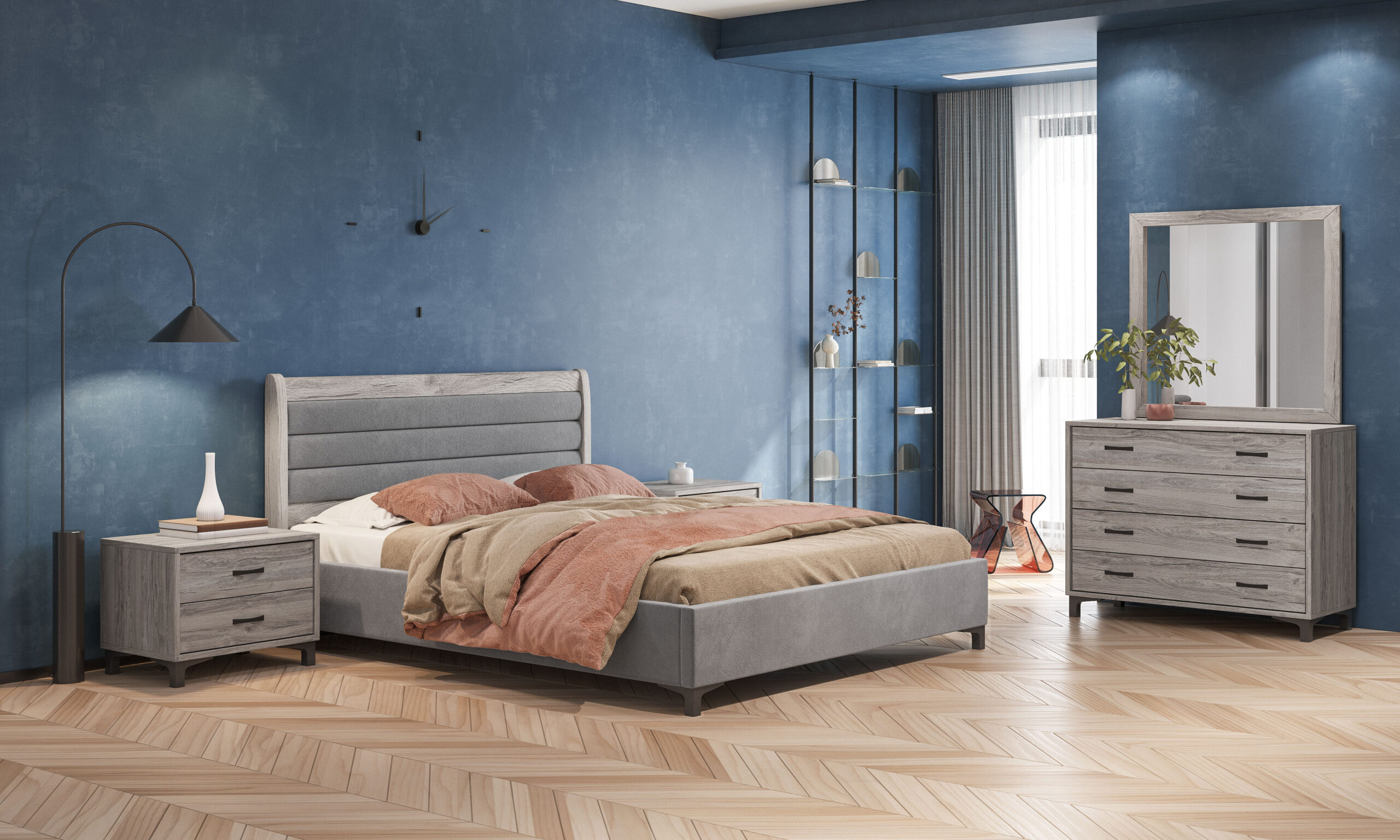 / Bed N92 Light Grey Fabric & Ash Grey Furniture