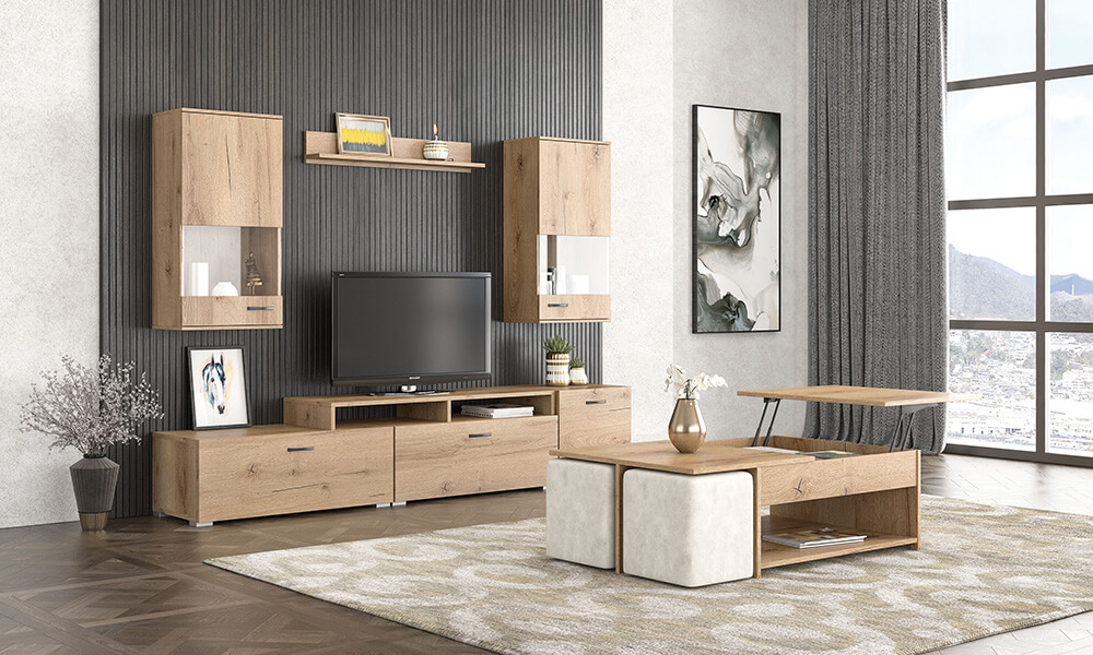 Composition N43 Only Ash Grey, Dark Oak, New Walnut Or Honey – Coffee Table N25 Honey