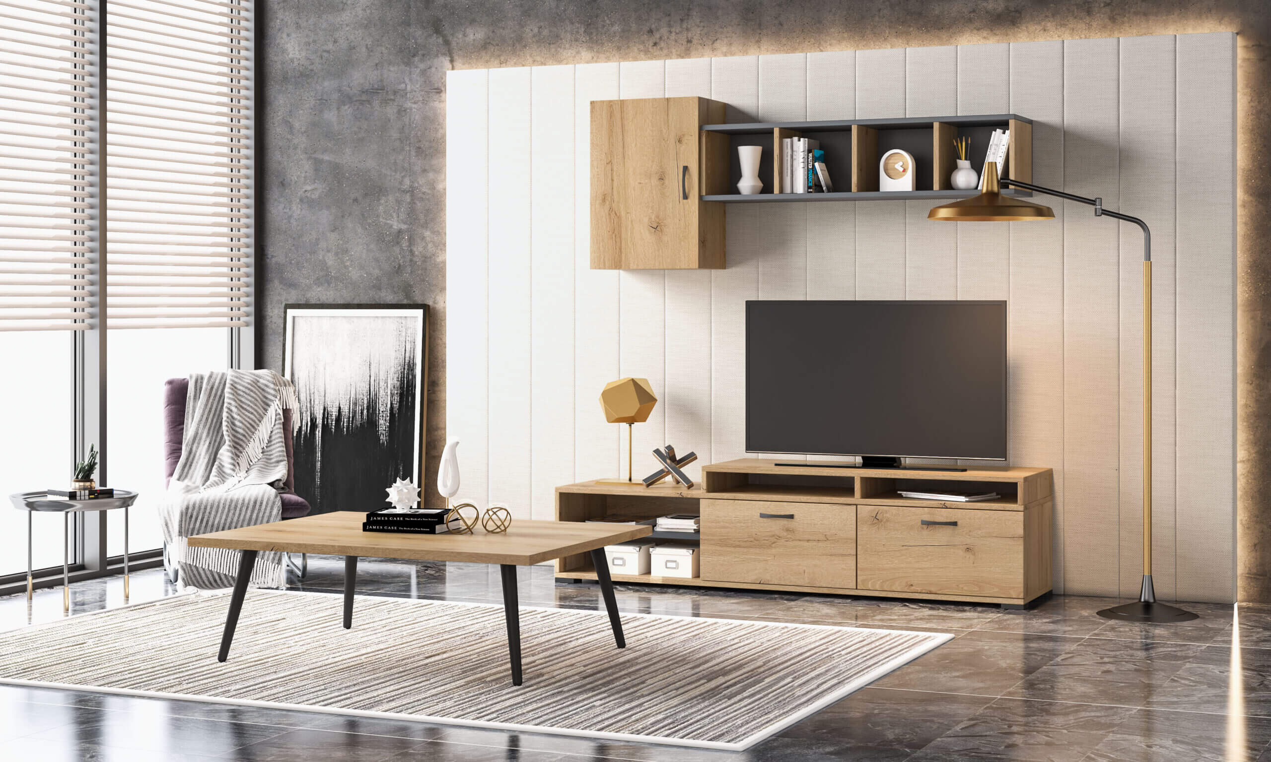 / Composition N43 Only Ash Grey, Dark Oak, New Walnut Or Honey – Coffee Table N25 Honey