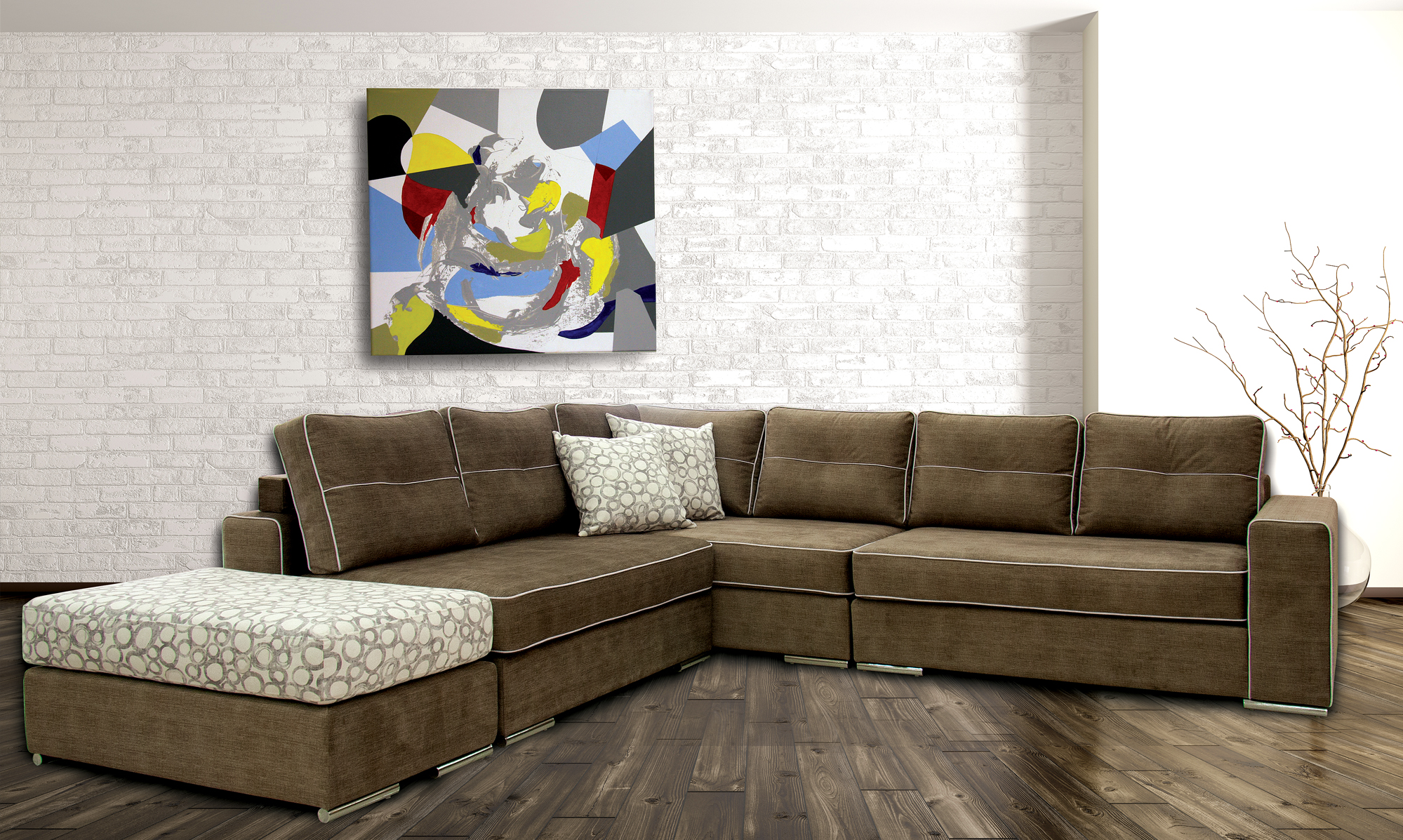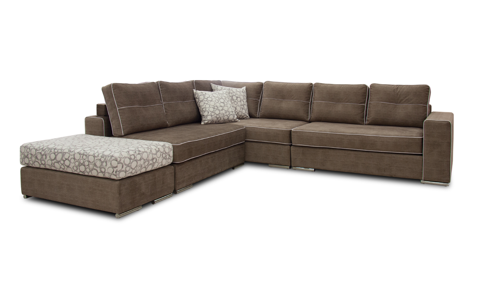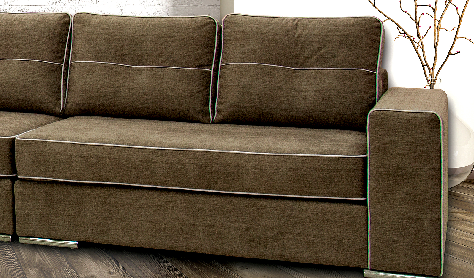Τα λευκά φιτίλια περιμετρικά των μαξιλαριών καθώς και η στιβαρότητα τους αποτελούν ιδανικά χαρακτηριστικά πολυτέλειας στον γωνιακό καναπέ Taylor. Η καθημερινή του χρήση αποτελεί σίγουρη την απόλαυση και την λειτουργικότητα του.