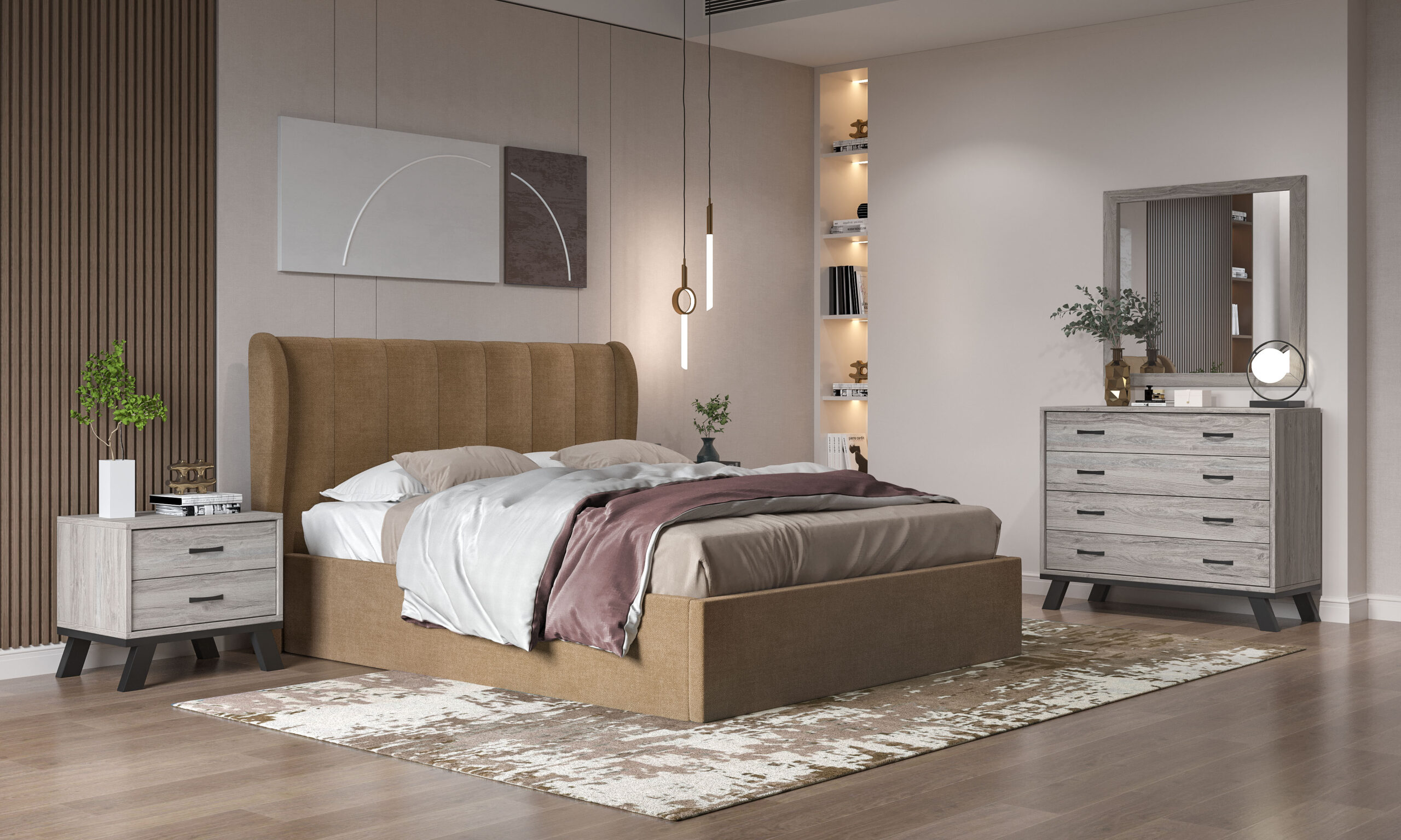 Trunk Bed N82 Camel Fabric & Ash Grey Furniture